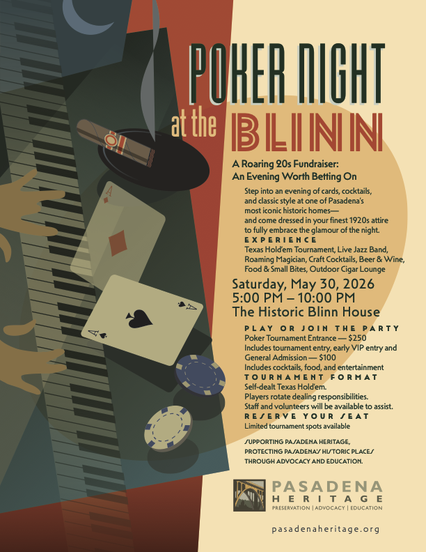Join Pasadena Heritage for an evening of cards, cocktails, and classic style at the Historic Blinn House.